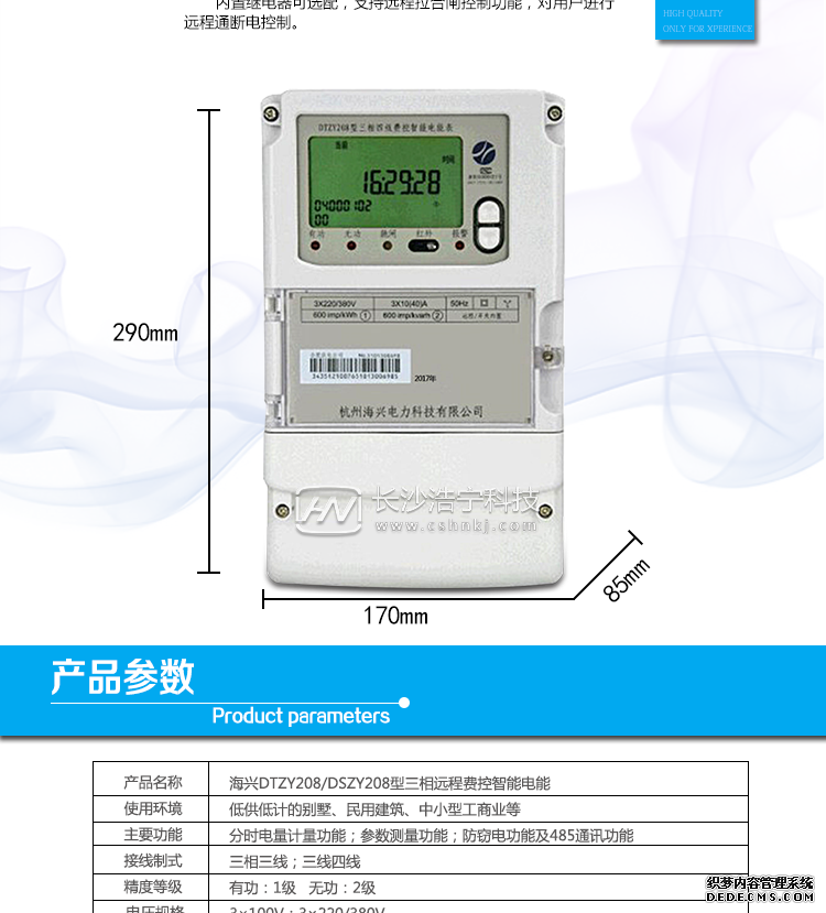 杭州海興DTZY208型三相四線遠(yuǎn)程費(fèi)控智能電能表(STS)