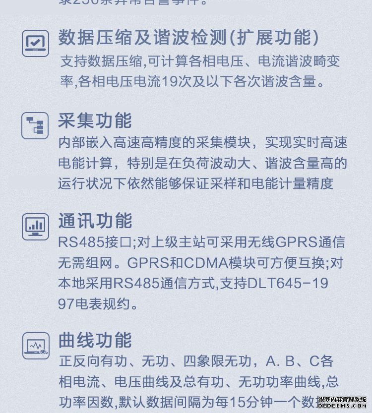 主要功能:有功,功率因素,有功功率,無功功能,電壓,電流,需量,諧波